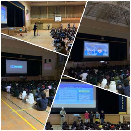 4・5・6年生は、講堂で、東日本大震災の「釜石の奇跡」についてのDVDを鑑賞しました。