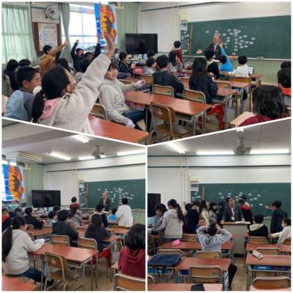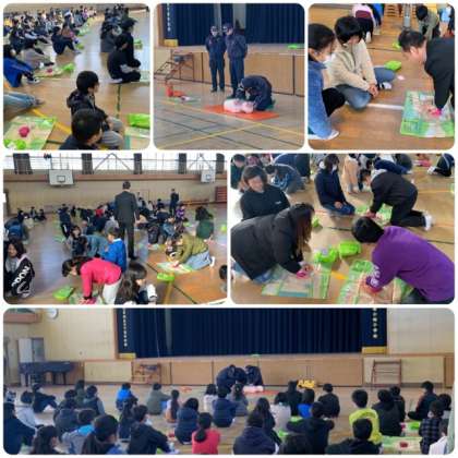 DVD鑑賞のあと、5,6年生は、「あっぱくん」という心肺蘇生の訓練と、「クロスロード」という災害対応について考える防災ゲームを行いました。