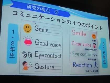 本校の児童は、英語の研究を始めた3年前に比べると、英語に慣れ親しみ、指導者や視聴覚教材の英語を聞き取れるようになったり、授業以外の時間でも自然と英語を話したりする姿が見られる児童が増えています。アンケートでは、「英語が好き」と回答する児童が93%もおり、楽しみながら英語を学習しています。