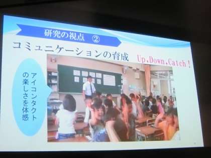 本校では3年間、英語の研究を進め、全教職員で一丸となって取り組んできました。その実践例や成果を、旭区の他の小学校の先生方へ紹介しました。