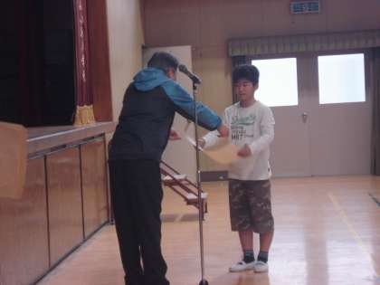 先日の児童朝会で校長先生より紹介され、代表の児童に賞状が渡されました。