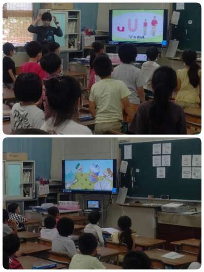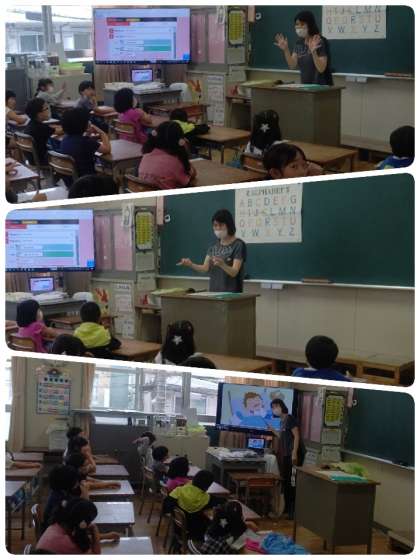 SLタイムでは、1年3組の子どもたちがC−NETで来られているロバート先生と英語の学習をしました。ロバート先生の言葉をしっかり聞いて、真似てリピートしていました。