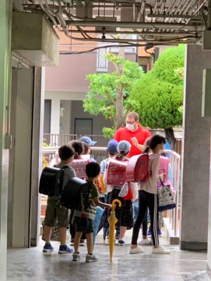 下校時、「See you!!」とC-NETのロバート先生にあいさつをして帰る様子です♪