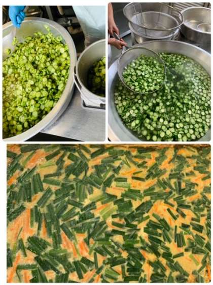 出来上がったものを調理員さんたちが1人分ずつに切りわけて配缶してくれました。