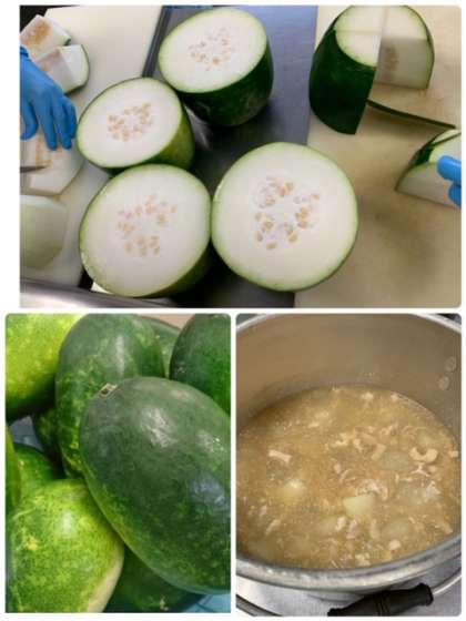 夏が旬のとうがん。今日は長崎県産の大きなとうがんを9個使っています。
