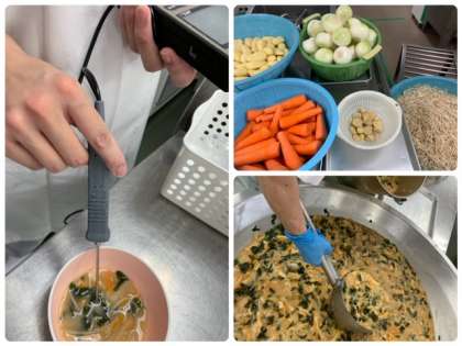 普段からでも、毎日全ての献立において中心温度計を使い、85度以上まで上がっているかをきちんと確認した後、さらに1分間加熱を行っています。☆☆