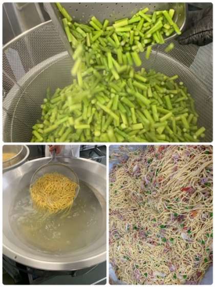 きれいに洗い切ったものをスチームコンベクションオーブンで蒸し、砂糖・塩・ワインビネガー・綿実油で作ったドレッシングで和えます。