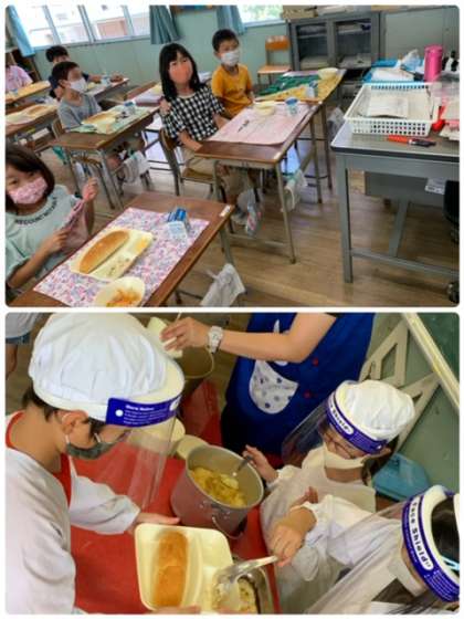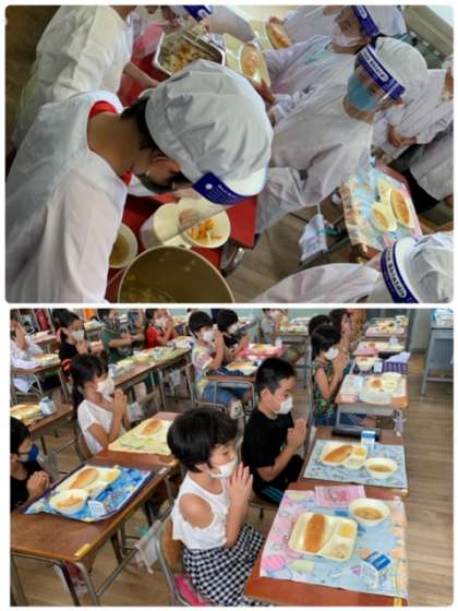 給食当番の児童が手際よく準備をする様子が見られ、待っている児童も驚くほど静かでした。