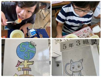 5年3組、給食の時間♪