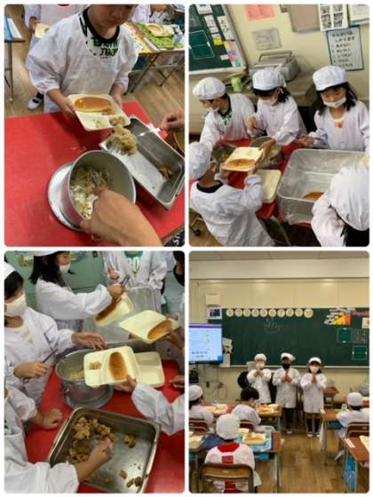 準備を終えると、給食当番さんが前に出てきて…