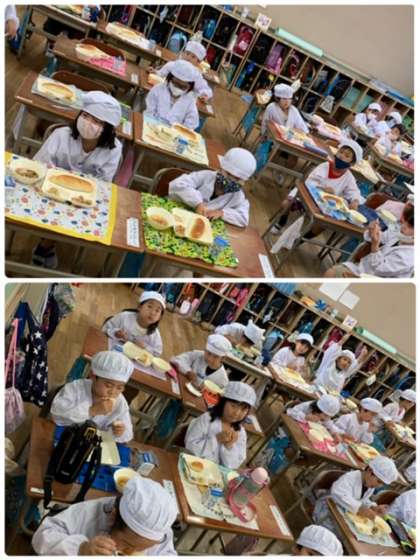 今日の写真は1年3組さんの給食時間の様子です。