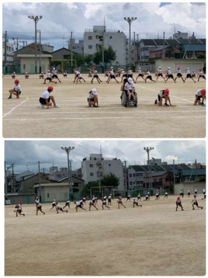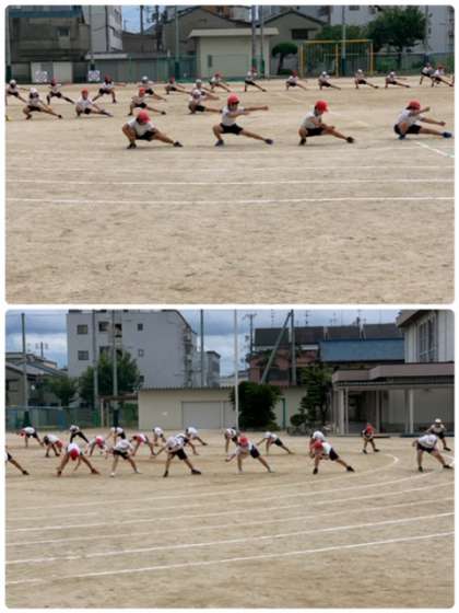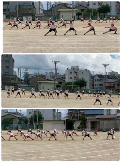 蒸し暑い中、水分補給をはさみながら何度も動きの確認をしていました。