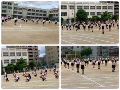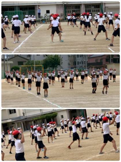 3時間目、4年生は運動会の練習をしました。