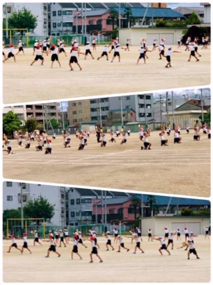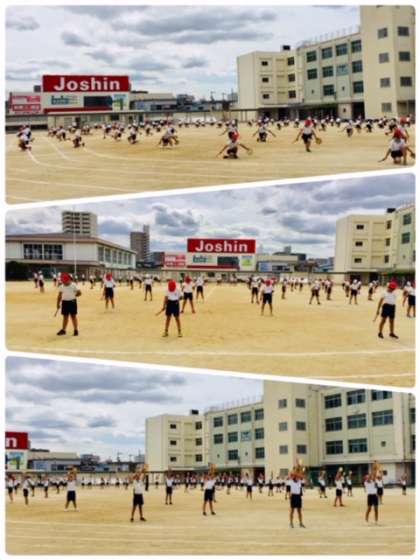 まずは、並び方や向きの確認をしました。今までは、全員前を向いての練習だったので、今日からは、それぞれの方向を向いて踊ります。
