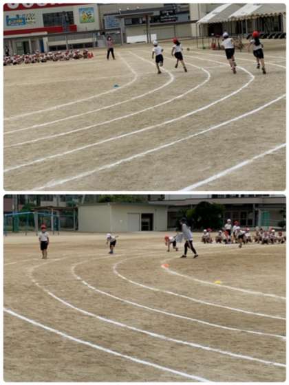 2時間目、2年生は運動場でかけっこの練習です。