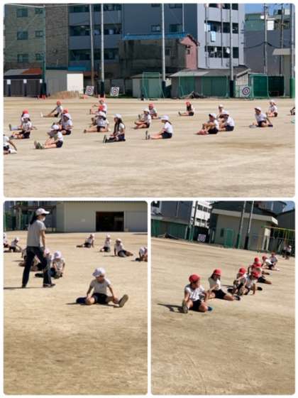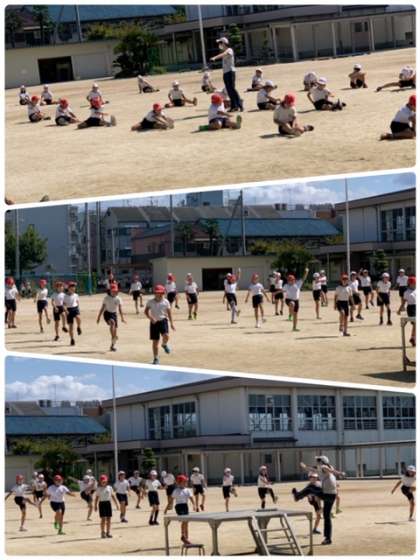 最後まで見ることができなかったので、後で担任の先生に聞いてみたところ、ハードル走前に行う準備運動をしていたそうです!!