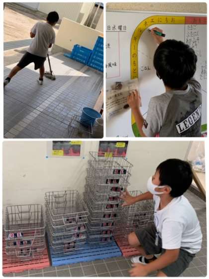 今日の写真は5年1組の給食委員会の児童の様子です♪