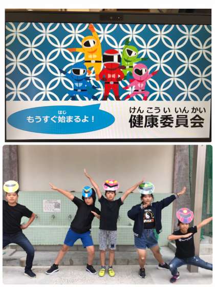 今日のにじいろ集会で、健康委員会の動画発表を行いました。