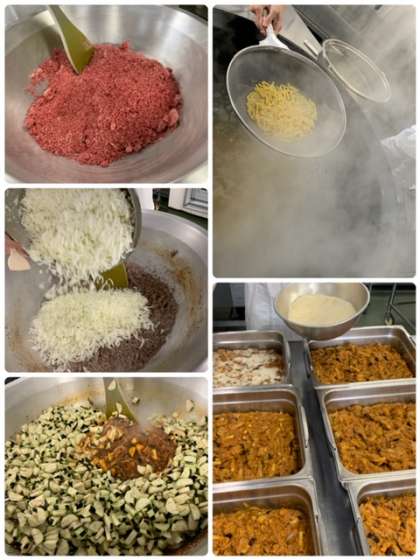 今日のグラタンは、なすメインだったこともあり、使用する量がとても多くてびっくり!!およそ15kgのなすを調理していただきました^^