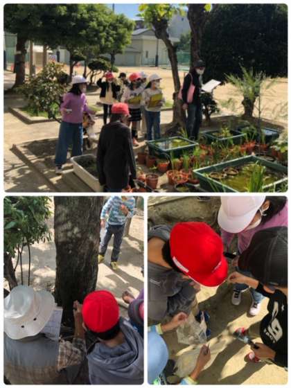 大阪市環境局の指導員さんに来ていただき、理科の特別授業「小学校の秋冬の生き物さがし」の講義を受けました。学校の中には、いろいろなところでたくさんの生き物がいて、中には見たこともない生き物を捕まえることができました。とても楽しい時間を過ごさせていただきました!