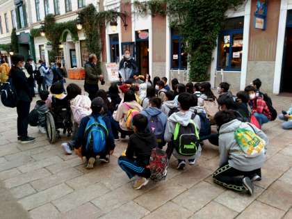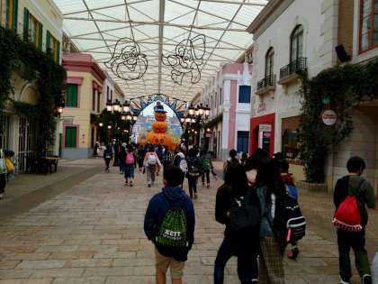 スペイン村に到着しました。雨が降っているので、入場してから、各クラスごとに出発しました。