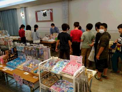 みち潮で、お土産を購入しています。1クラスずつお土産を買っています。それ以外の2クラスは、お風呂に入ったり、部屋で休憩したりしています。