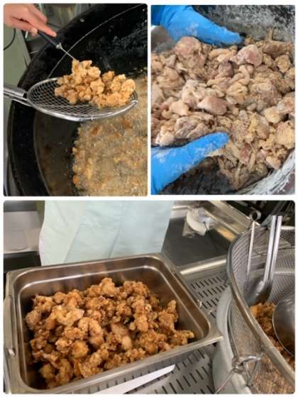 しょうが・料理酒・こいくちしょうゆで下味をつけた鶏肉をでんぷんをまぶしてカラッと揚げた、子どもたちにとても人気のある献立です。