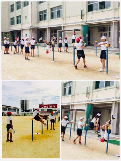 鉄棒は、苦手だと思う児童も多いです。逆上がりなどが得意な児童とペアを組んで、隣でコツを聞きながら練習をしました。