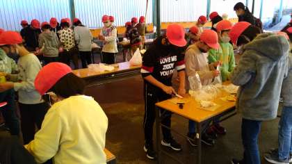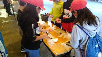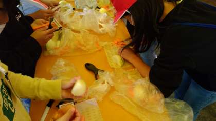 野菜は、できるだけ薄く切ります。自分の分は自分で。