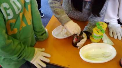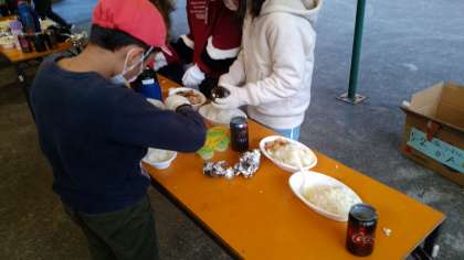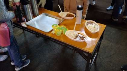 ご飯がおいしそうにたきあがりました。ルーをかけてもらってできあがりです。