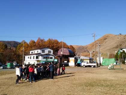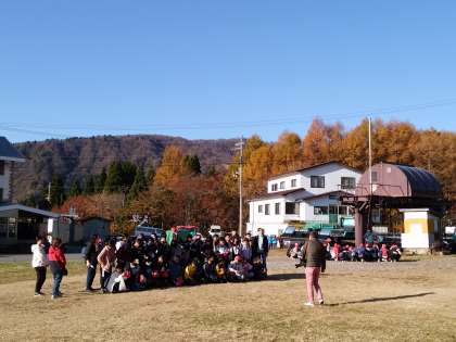 朝のきれいな風景の中、集合写真を撮りました。できあがりが楽しみですね。