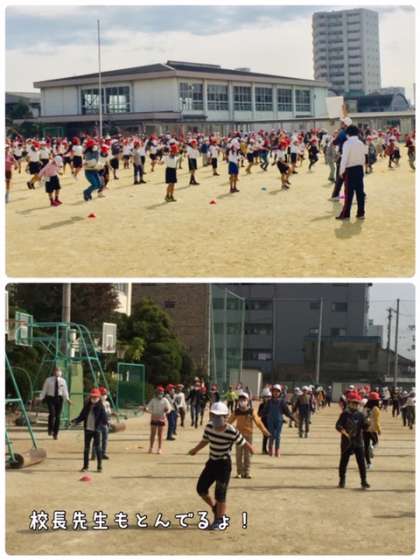 ここ数日、暖かい日が続いているので、子どもたちは、跳んだあとに「暑い、暑い!」と言っていました。