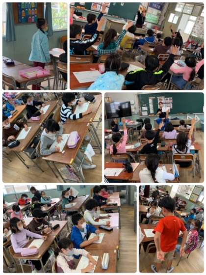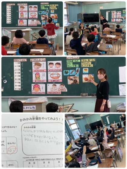 どのクラスも静かに聞き、積極的に発表をする様子が見られました。終始真剣に取り組み、よくかんで食べることの大切さを学びました。