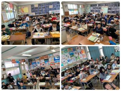 〜今学期最後の給食だったので多くの教室に行ってみましたが、みんな口を揃えて「めっちゃおいしい!!」としっかり食べていました。残食もほとんどありませんでしたよ^^