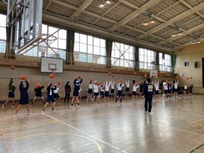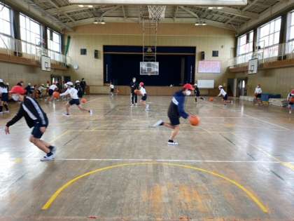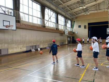 2,3,4時間目に各クラス対象に大阪エヴェッサのスタッフによる夢授業が行われました。子ども達はバスケットボールのドリブルの練習やシュートの練習に取り組み、とても楽しかったと子ども達からも感想が聞かれました。特に、スタッフの方が2つのボールを同時にドリブルをしているところを見て、子ども達は「ボールが手に吸い付いているように見えた。」とびっくりしている様子でした。