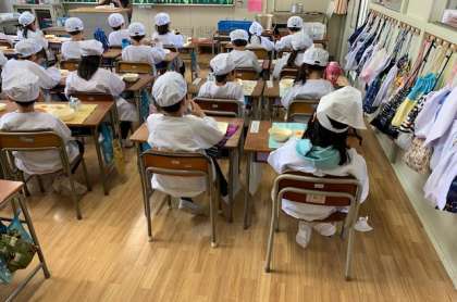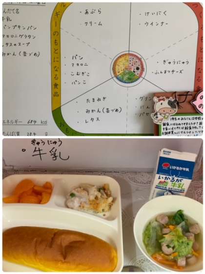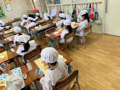 鶏肉を取材に、マカロニ・たまねぎ・グリンピースを使用した子どもたちに好評な献立です。クリームを使用することでコクを出しています。