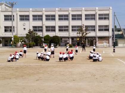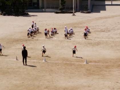 ボールを投げ上げながら走るなどいろいろな折り返し走をしました。しっかりとルールを守って学習に取り組んでいました。