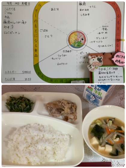 ピーマンとちりめんじゃこを綿実油でいため、砂糖・料理酒・こいくちしょうゆで味付けした、ごはんの進む献立でした。