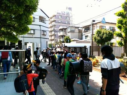 5時間目に、地区別集会を行いました。班長を中心に、登下校路での危険な場所などを確認しました。その後、地区別に分かれて下校しました。班長や副班長の人たちが、しっかりと並び方、歩き方について声かけをしていました。
