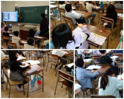 2年生は漢字の学習に取り組んでいました。空書きをしっかりとして漢字ドリルに書き込んだりノートに写したりしていきます。