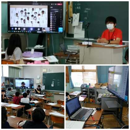 今日は。双方向通信の接続テストの日でした。朝の会をしているクラスでは、元気のよい返事が聞こえてきました。動画を見たり、ドリルの答え合わせをしたり、学習をすすめたりと学年に応じて工夫して進めています。