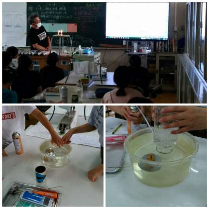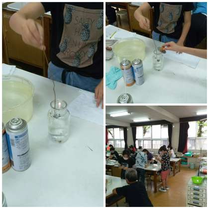 6年生は理科の学習をしていました。酸素・二酸化炭素・窒素にそれぞれ火のついたろうそくを入れ燃え方を比べる実験です。それぞれどんな結果になったのでしょうか。