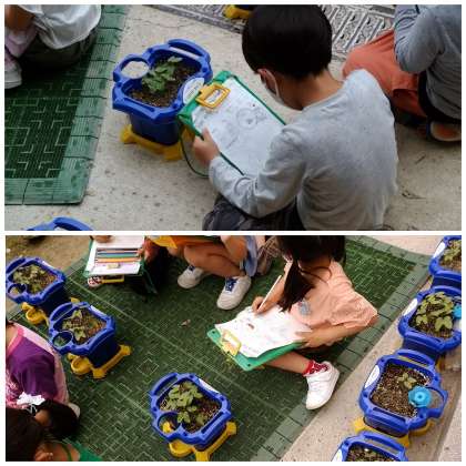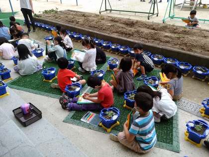 1年生の植えたアサガオが育ってきています。今日はその様子を観察し、絵や文章で記録していました。育っていく様子をしっかり観察していきましょうね。