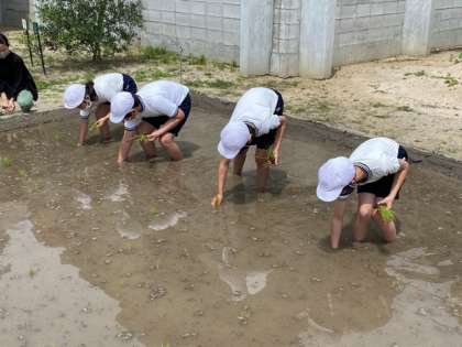 初めて田植えを体験する児童がほとんどで、「こんな泥の中でお米ができるんだ。」という声も上がっていました。
