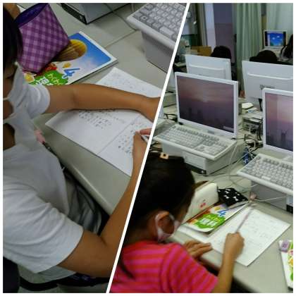 パソコン室で理科の学習に取り組んでいます。一日の気温の移り変わりについて、視聴覚教材を視聴して、気づいたこと、わかったことを記録していきました。