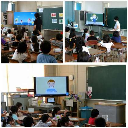 週に3日、5時間目が始まる前の10分間、英語短時間学習として英語の学習に取り組んでいます。少しの時間ですが、DVDなどを活用しながら、英語に親しむ活動を積み重ねていきたいと考えています。