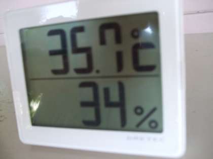今日、校長室前のろうか(日かげ)の気温は、35.7度でした。40度を超えている地域もあるとのことですので、それほどでもないように感じてしまいますが、非常に高い気温です。この暑さでどうしても寝不足になったり、食欲不振や冷たいものを飲みすぎたりしがちです。あと、1週間くらいすると少しは涼しくなるのではないかと期待しています。皆様、どうぞ体調には、くれぐれもお気をつけください。