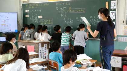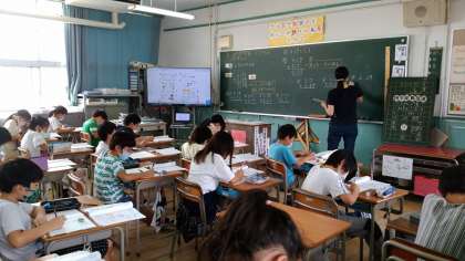 4年生が算数の小数のたし算に取り組んでいました。小数の計算では、0の取り扱いや小数点の位置など気を付けて計算をしなければいけないことがいくつかあります。子どもたちは、注意しながら計算に取り組んでいました。