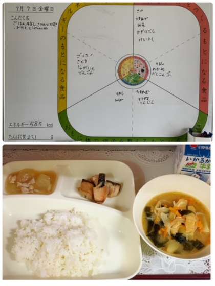 角切りのさけに、料理酒・砂糖・こいくちしょうゆで下味をつけて、焼き物機で焼いた献立です。味がしっかりとついていたので、ごはんがすすみました。