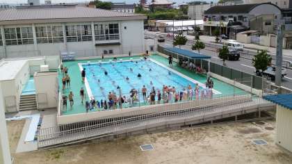 6年生の水泳学習の様子です。6年生は、平泳ぎの習得を中心に学習を進めています。平泳ぎは、技術的にも難しい泳ぎ方ですが、子どもたちは、一生懸命練習に取り組んでいました。